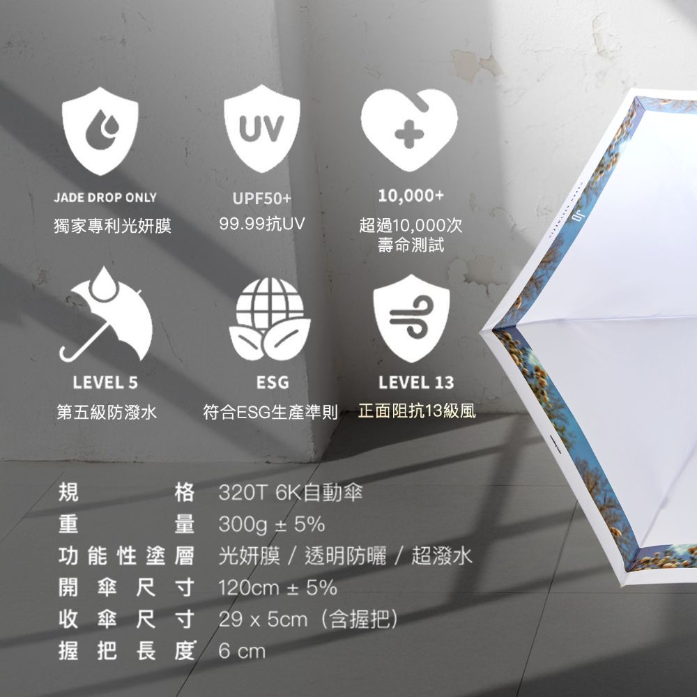 高效防曬、奈米級防潑水,晴雨兩用。使用高性能傘骨,輕巧好攜帶!