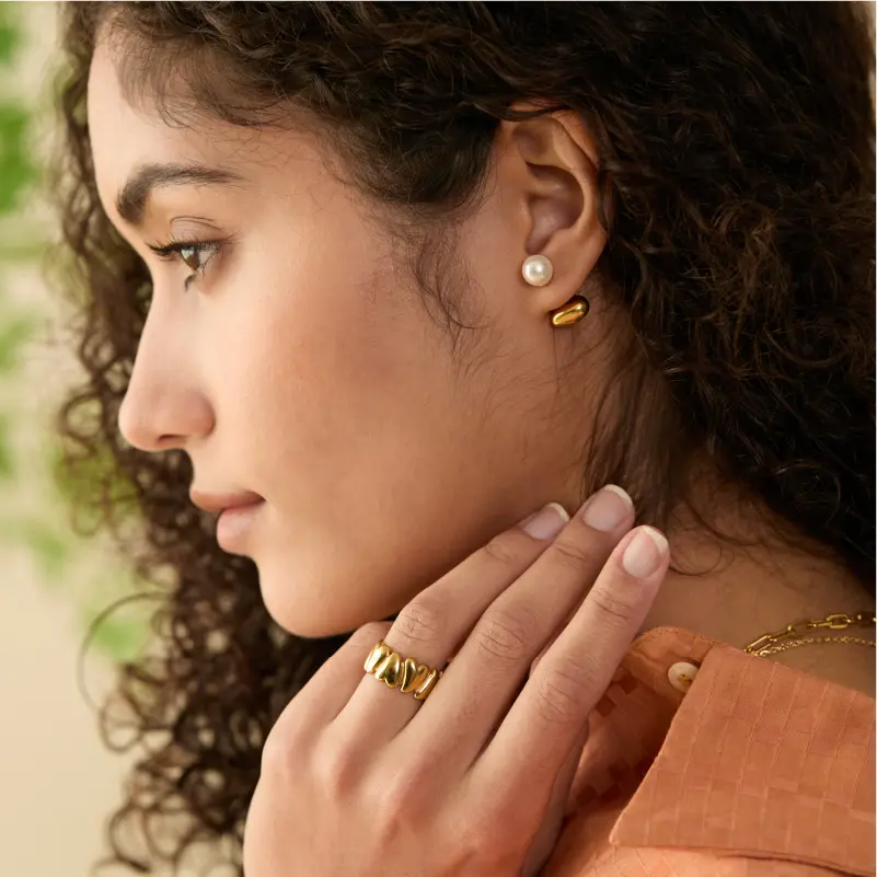 材質:水晶珍珠 (純素)|醫療鋼(316L抗敏不鏽鋼)|電鍍18K金