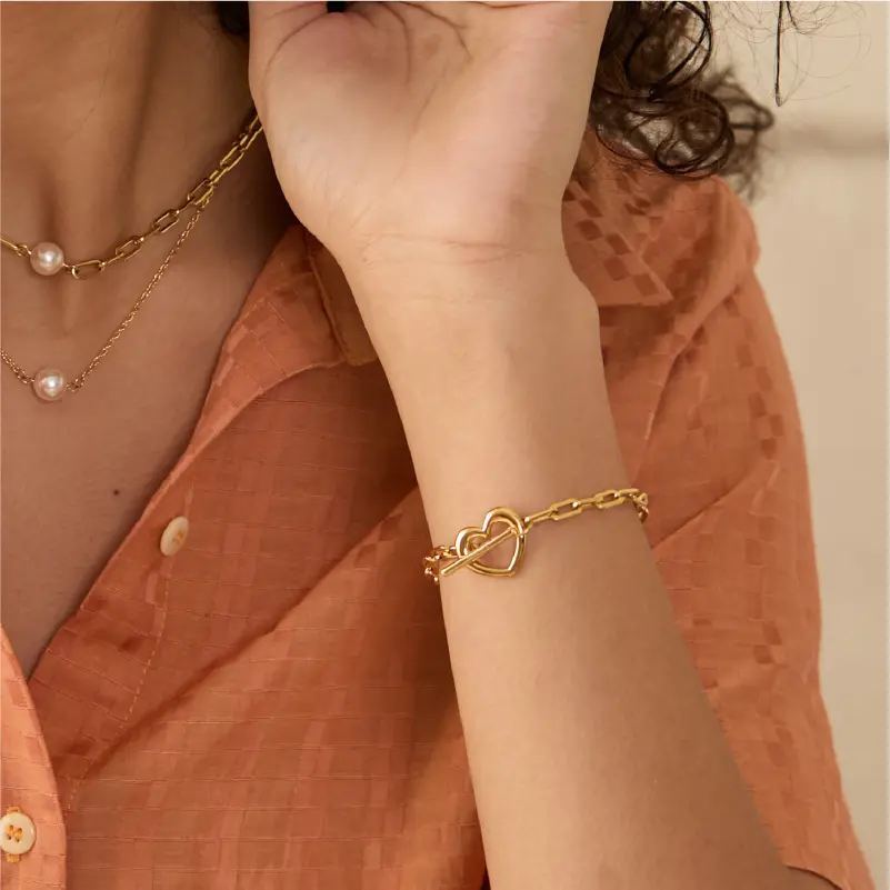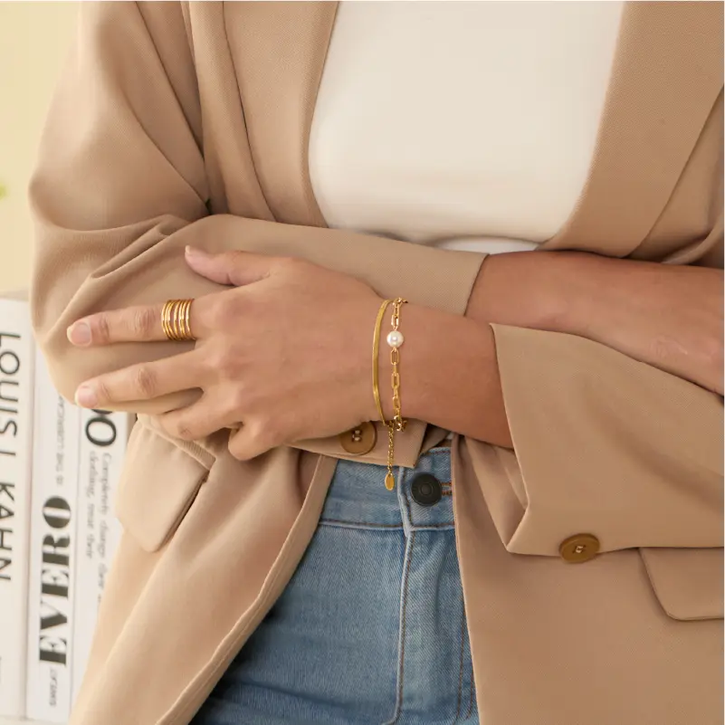 佩戴之際,不只展現風格,更是自信的象徵; 金色鎖鏈如同堅毅的決心,珍珠象徵本心,在人生旅途幾宗是提醒你要珍視自己內在的光輝。