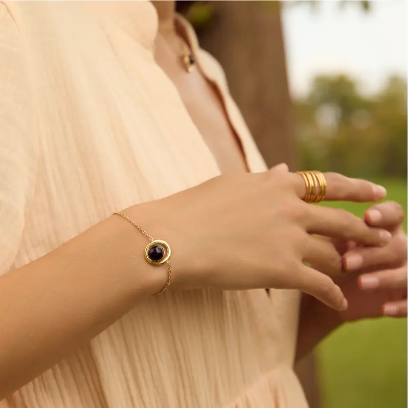 這條來自Cosmos系列的手鍊宛如護身符,連接宇宙正能量。當您凝視它時,讓黑曜石的深邃光澤喚醒內心的勇氣。
