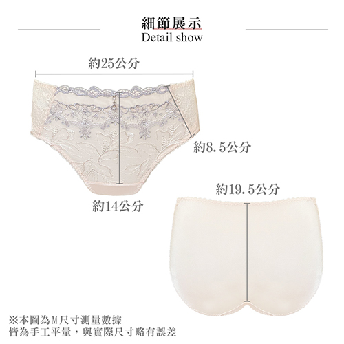 2. 前褲片—閃耀花卉與輕透網布結合,展現柔和質感。