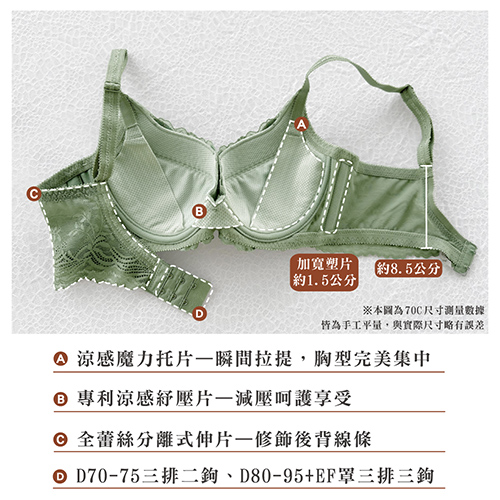 【思薇爾】撩波生命之花系列D-F罩涼感蕾絲集中包覆女內衣(焙茶綠)