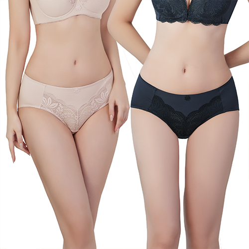【思薇爾】★2件組★舒漾Bra系列M-XXL涼感消臭蕾絲中腰三角女內褲(2色各1件)
