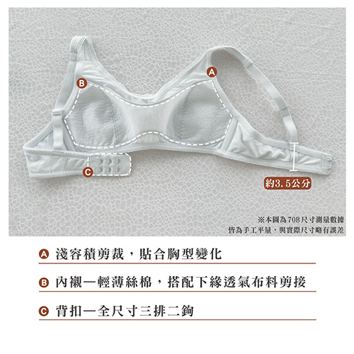 4. 淺容積剪裁,貼合胸型變化,幫助小少女逐步適應後扣式內衣。