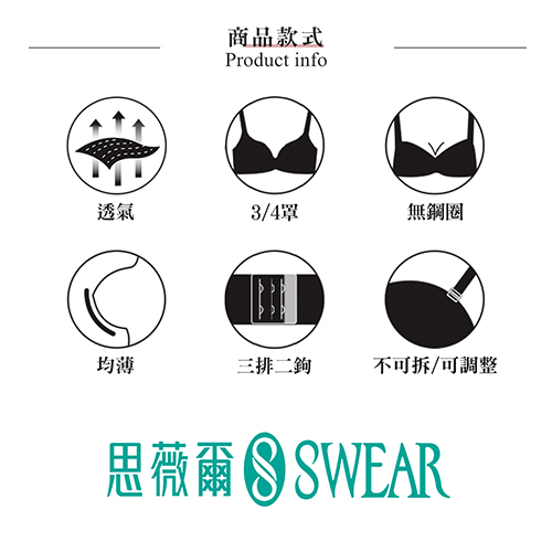 2. 3/4罩前背心+後背鉤設計,輕巧好穿脫。