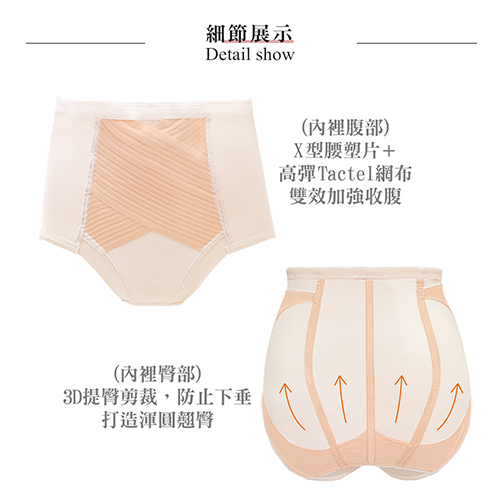 6. 內層檔布—皆使用高彈Tactel網布,從腰腹到臀部,穩定包覆,完美修飾。