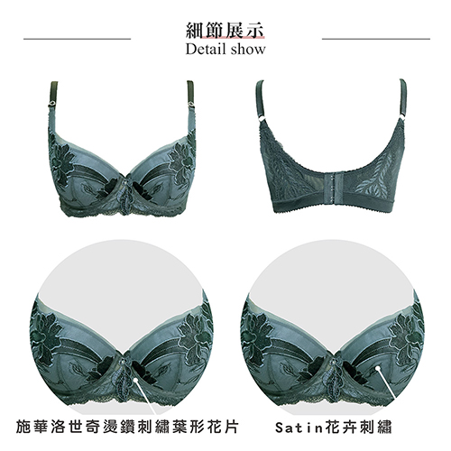 【思薇爾】珠韻花后系列C-F罩軟鋼圈背心型蕾絲刺繡集中包覆女內衣(碳晶綠)