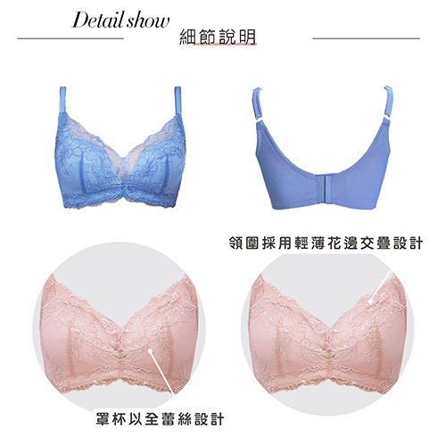 【思薇爾】幸芙Bra系列B-E罩無鋼圈模杯蕾絲集中包覆女內衣(雷根藍)