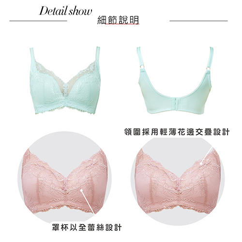 【思薇爾】幸芙Bra系列B-E罩無鋼圈模杯蕾絲集中包覆女內衣(冰雪綠)