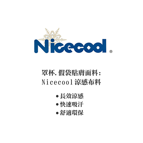 2. 罩杯貼膚面料—Nicecool涼感布 (1)親膚柔順 (2)吸濕快乾 (3)透氣涼感。