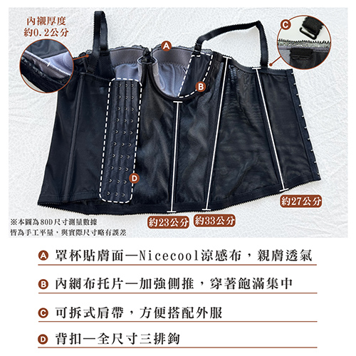 背  扣:三排十鉤(寬度22.8cm)