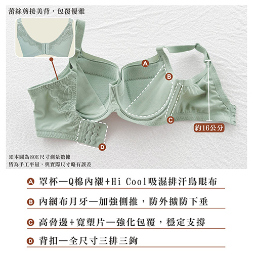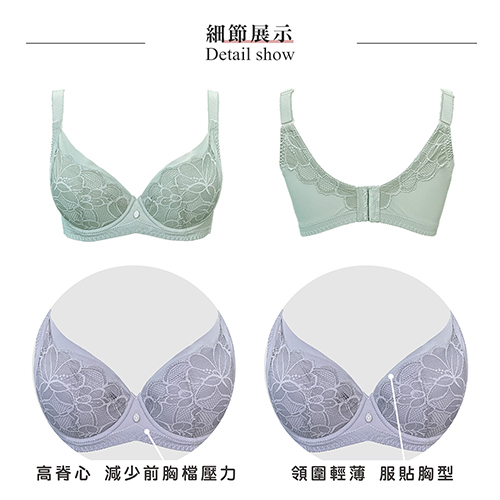 【思薇爾】美波曲線系列E-H罩調整型蕾絲包覆大罩塑身女內衣(迷霧綠)