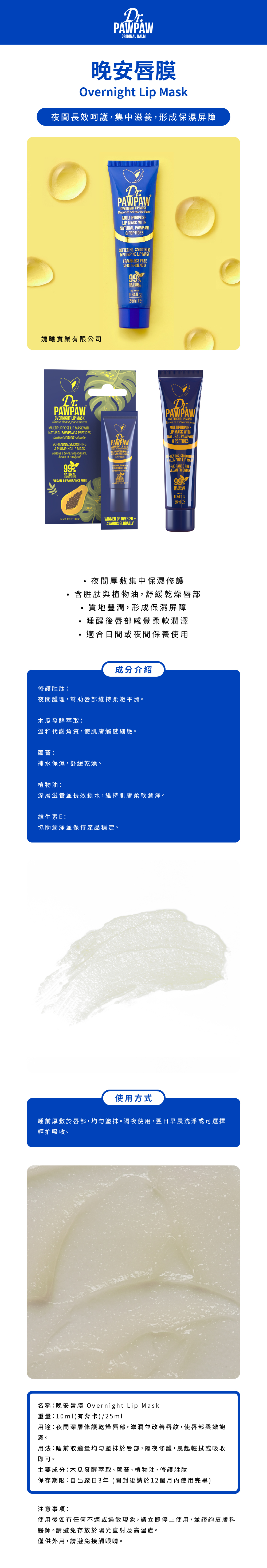 Dr.PAWPAW 晚安唇膜 (英國木瓜霜/護唇膏/萬用霜)
