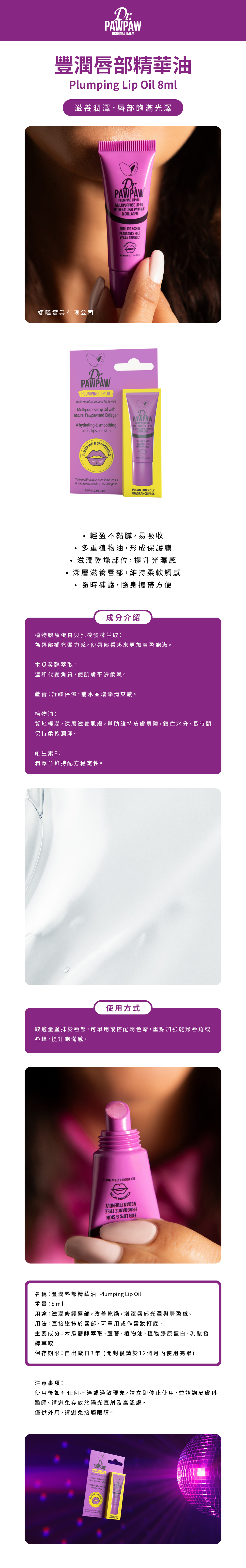 Dr.PAWPAW 豐潤唇部精華油8ml (英國木瓜霜/護唇膏/萬用霜)