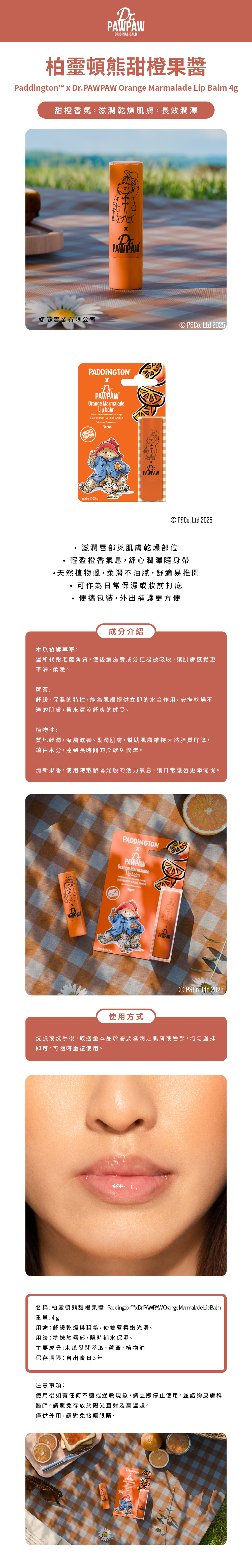 Dr.PAWPAW 柏靈頓熊-甜橙果醬4g (英國木瓜霜/護唇膏/萬用霜/Paddington)