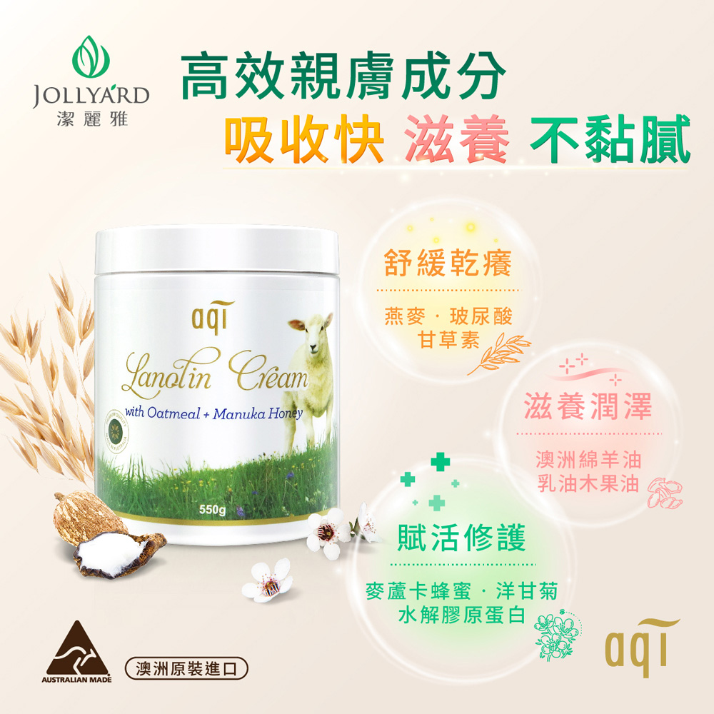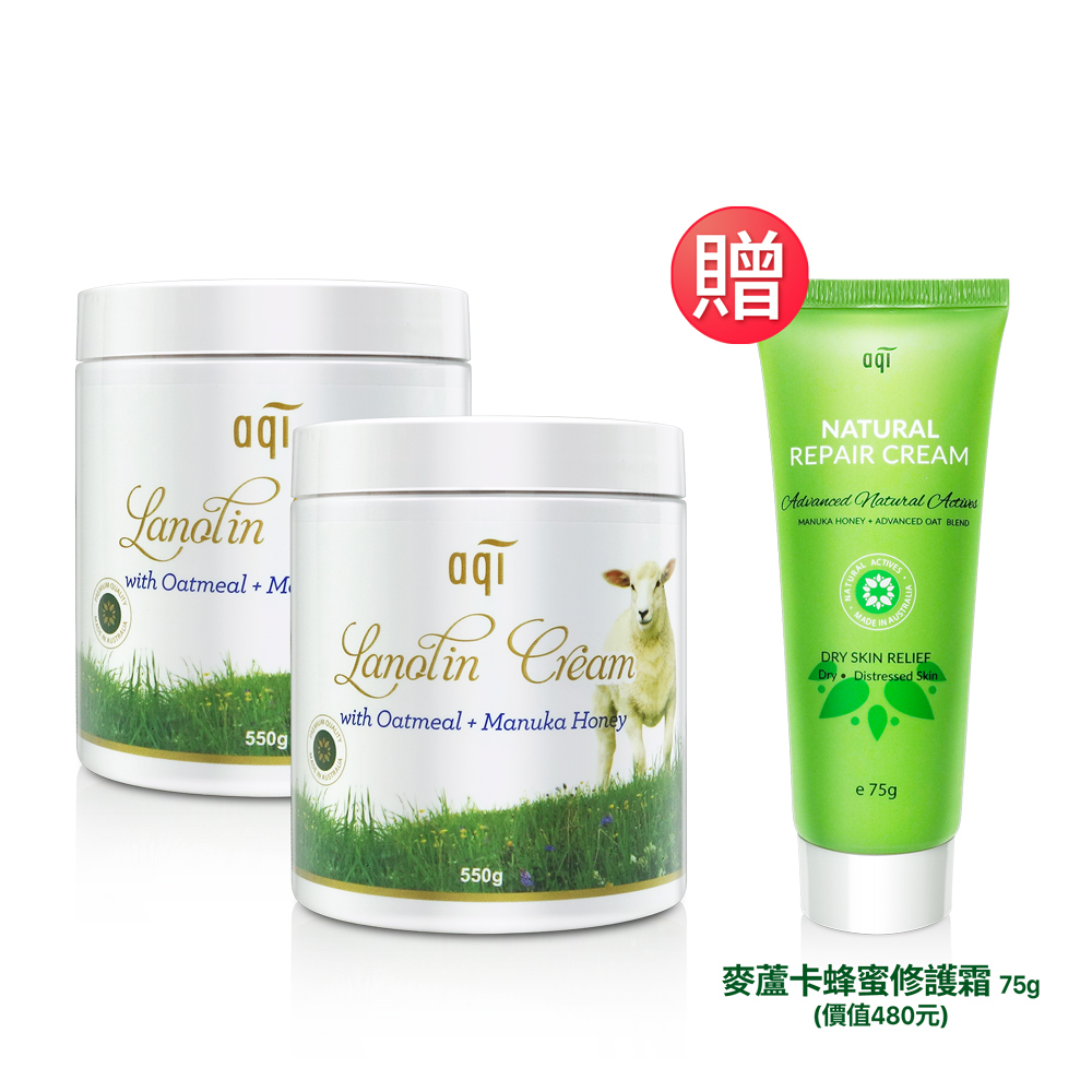 澳洲aqi 綿羊油極潤潤膚霜550g *二瓶 + 麥蘆卡蜂蜜修護霜75g*一支