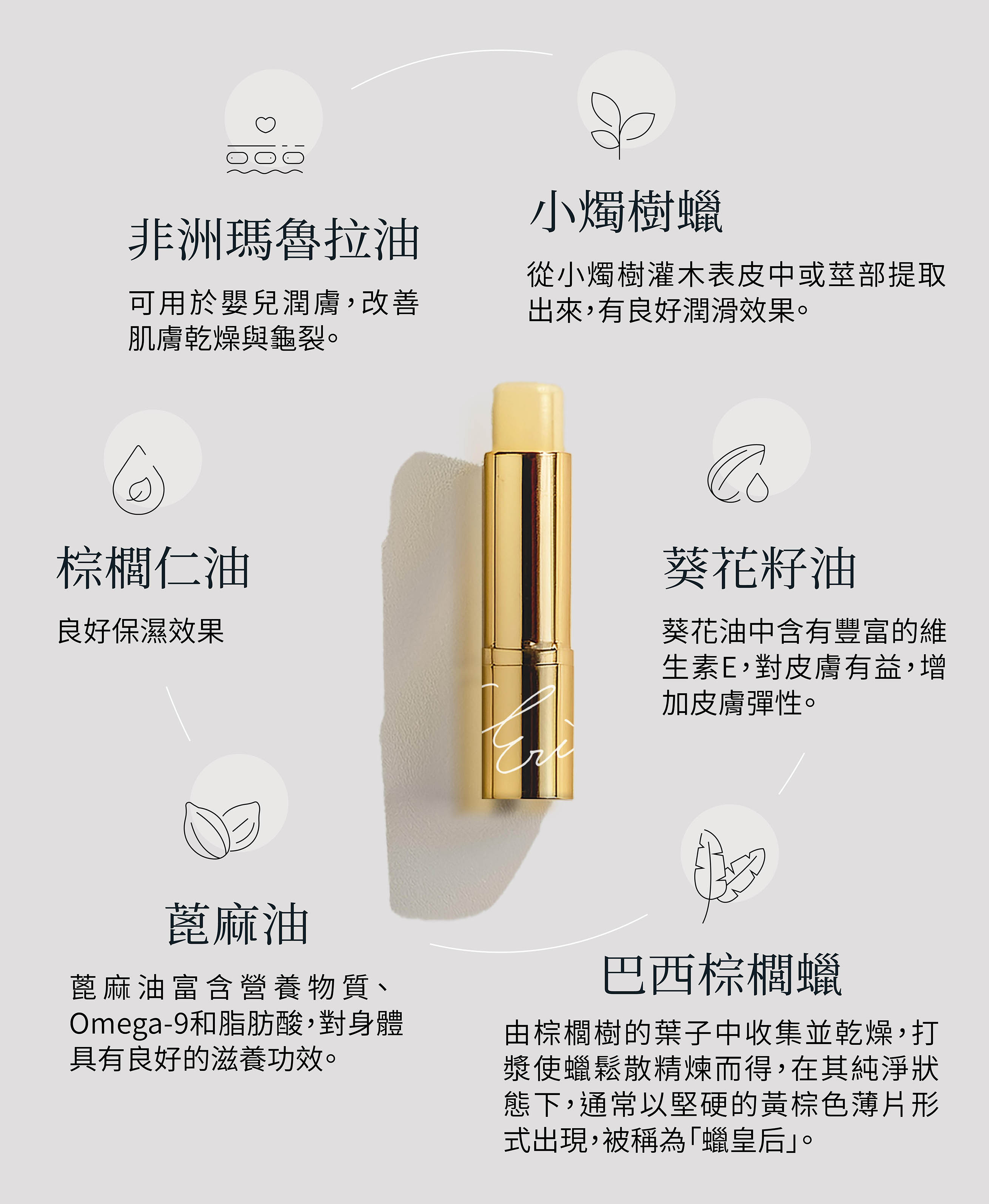 • 豐潤濃郁質感每日塗擦三次,可保持唇部潤澤有彈性。