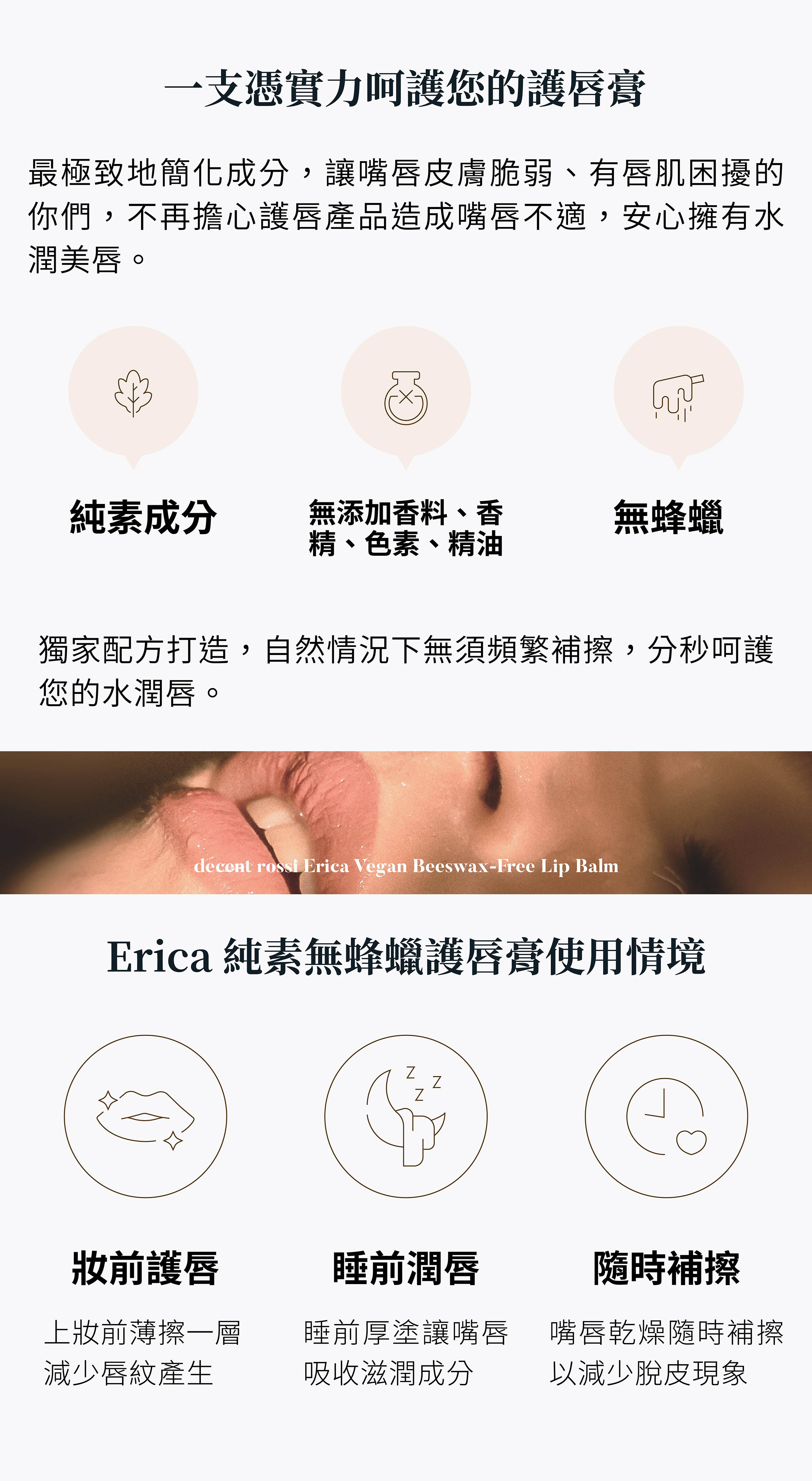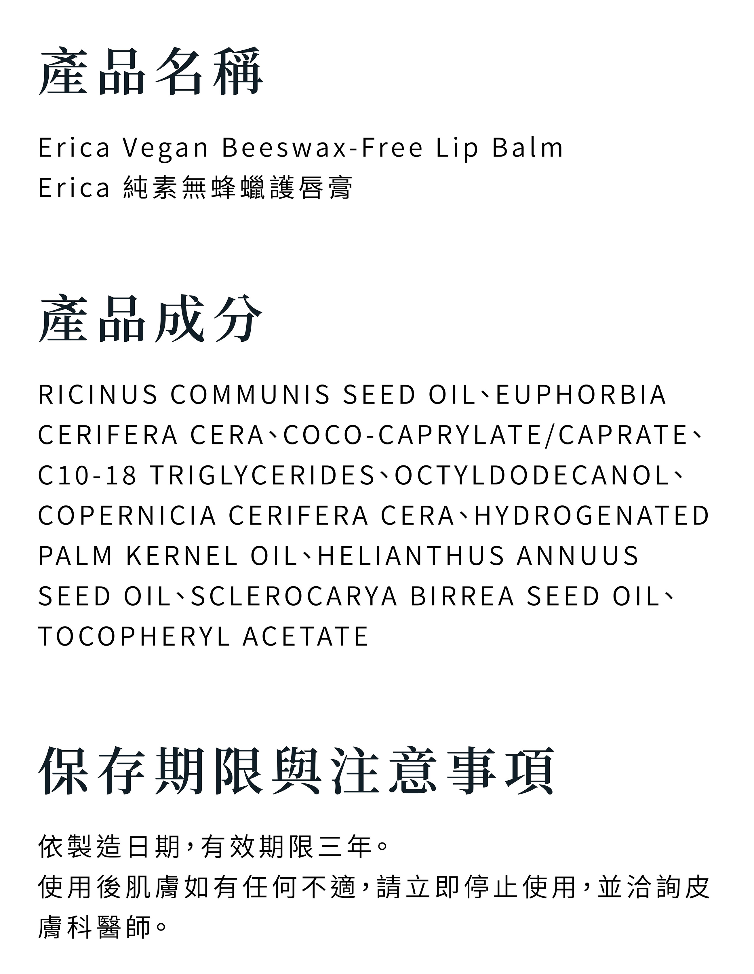 【 Erica 純素無蜂蠟護唇膏 3.5g (完整品) 為:外殼商品×1 補充蕊商品×1 寄出】