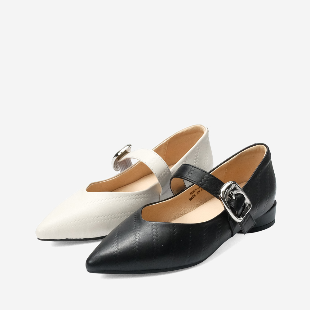 Ben&1966 高級頭層牛皮低跟尖頭瑪莉珍鞋-米白(248102)