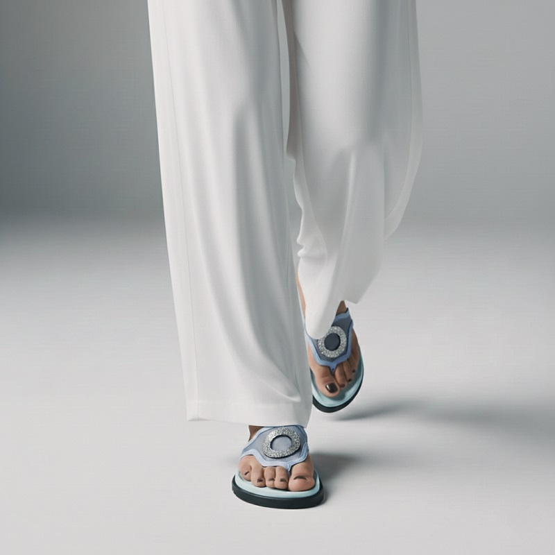 冰藍紗網 × 月暈配件,像替雙足套上一層高級濾鏡,