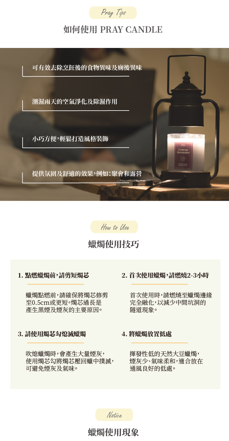 1.使用蠟燭時,請勿靠近易燃物。