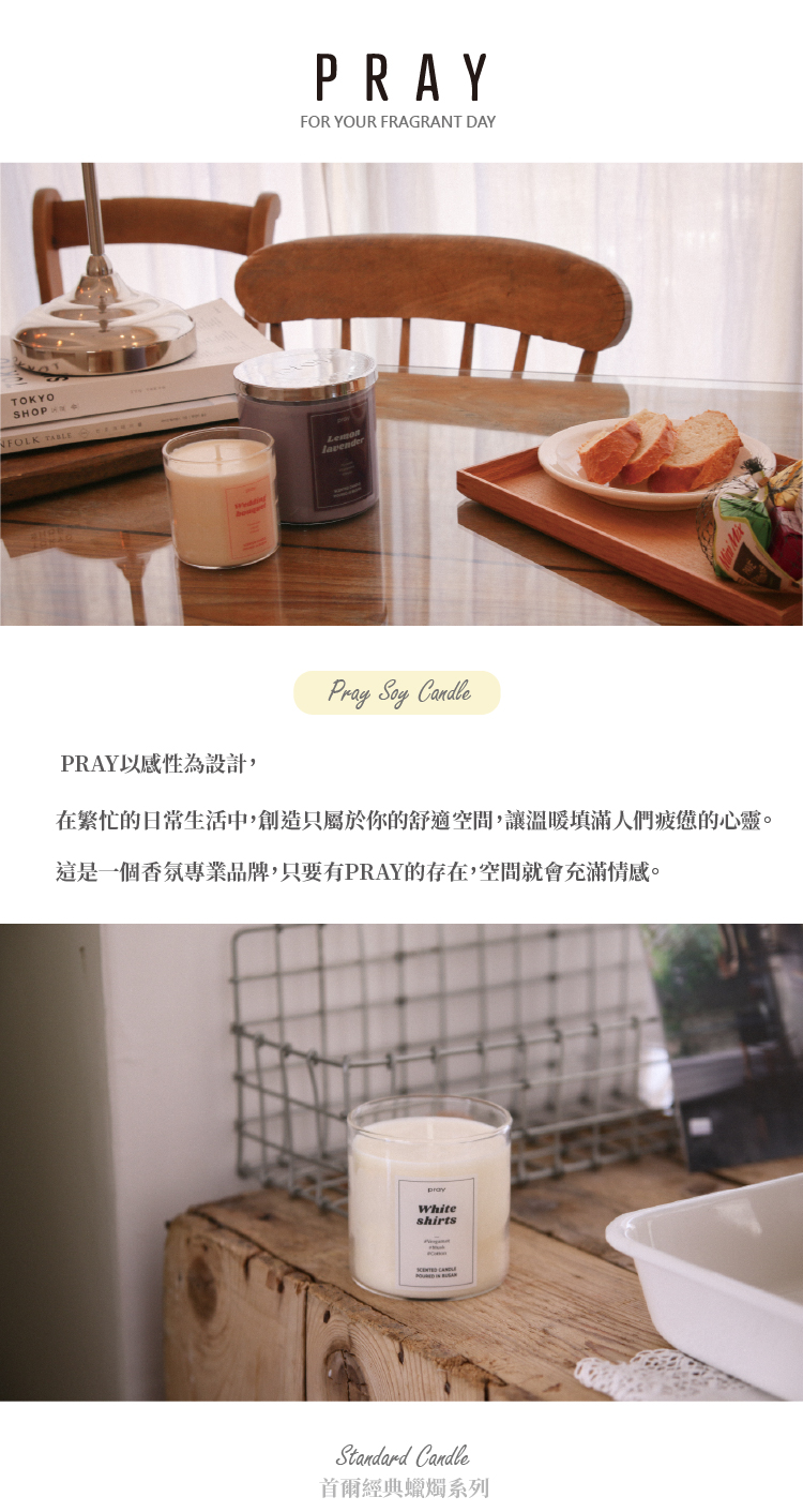 ✧PRAY 經典天然香氣蠟燭系列使用最高級的精油以及100%純天然大豆製作而成,韓國釜山手工製作。暢銷的經典香氣,深沉而濃郁的蠟燭系列。