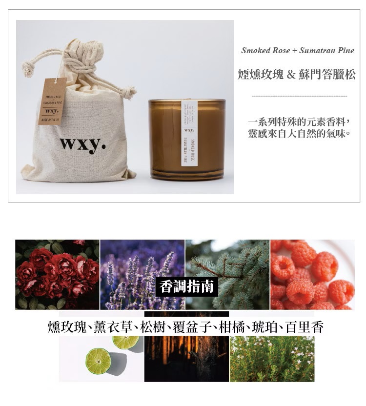 英國wxy Amber蠟燭-煙燻玫瑰&蘇門答臘松