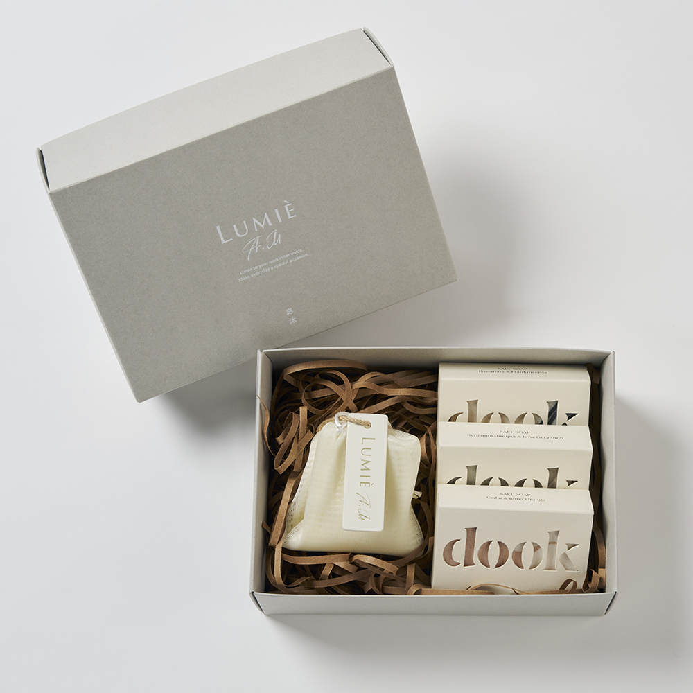 北海道插畫家ネクタイX 路洣聯名禮盒 - 光與肌膚的重生盒組( dook手工皂*3 + 特選沐浴袋*1)