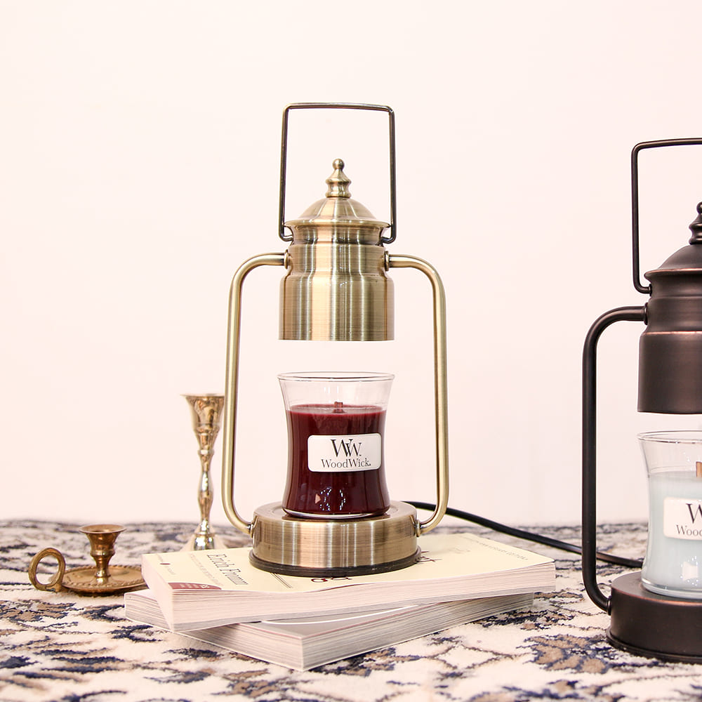 它利用鹵素燈泡的熱能使香氛蠟燭融化,簡潔的設計,