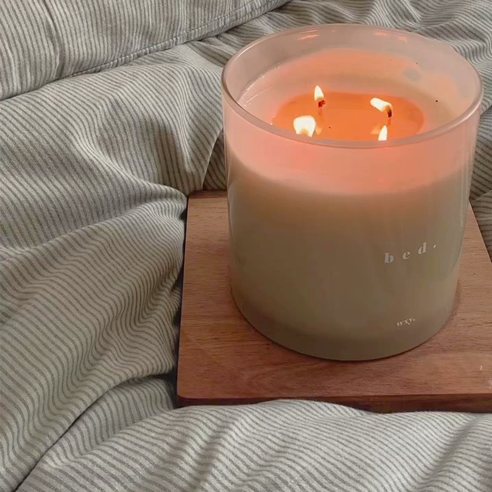 《1500g大容量的磨砂彩色玻璃蠟燭》-bed.柔和的麝香與奢華的白花為基調,並以微妙的香草收尾