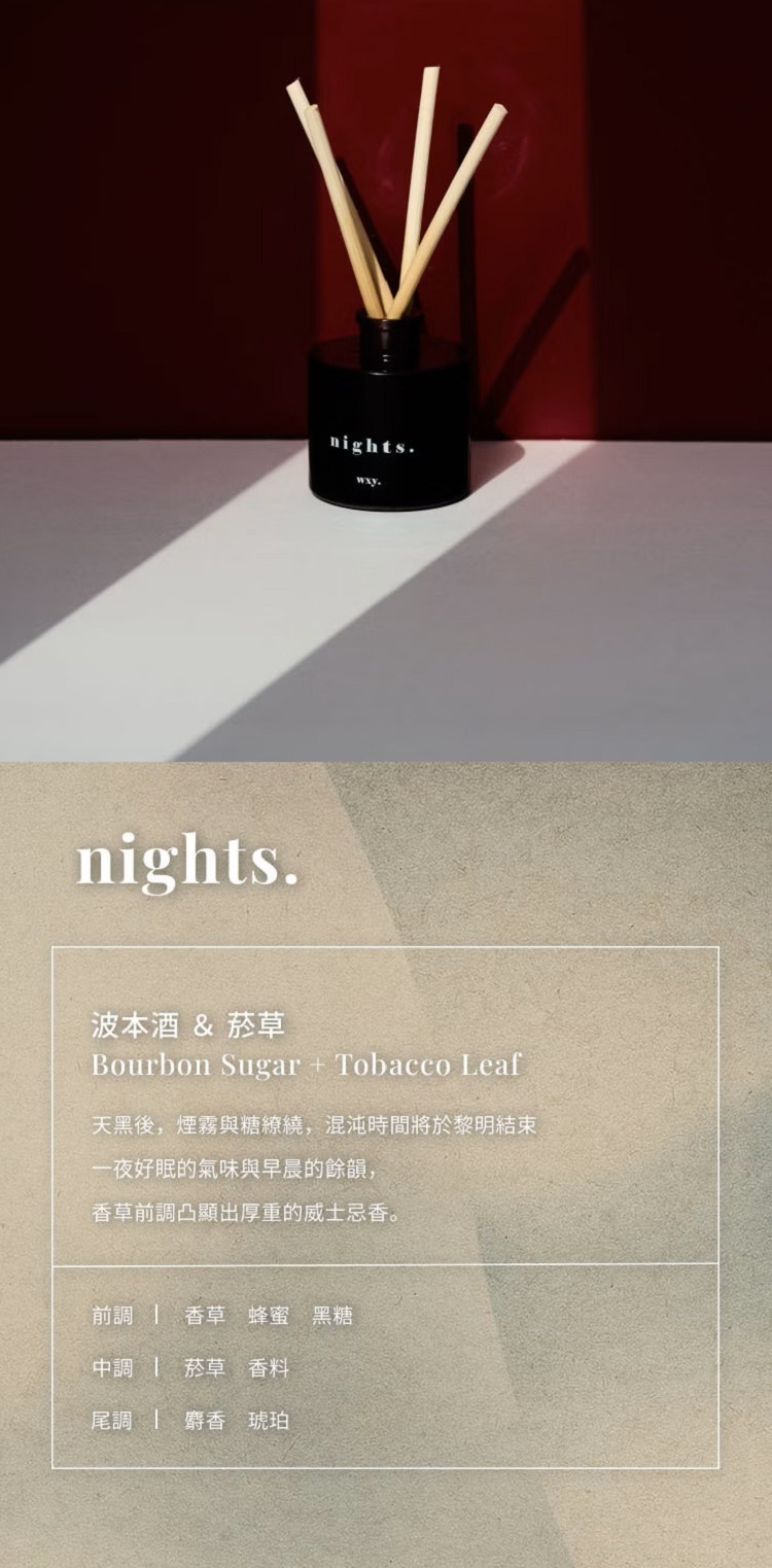 nights. 波本酒 & 菸草|Bourbon Sugar + Tobacco Leaf