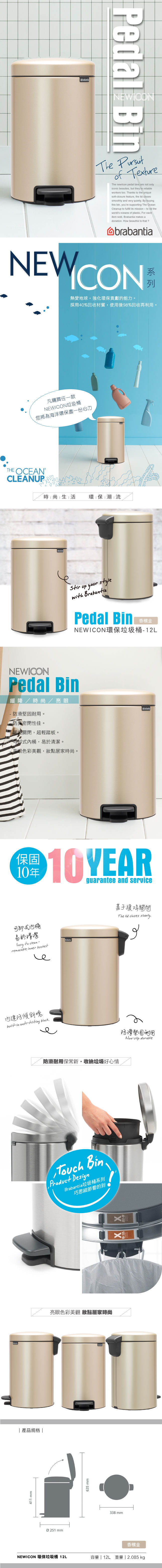 Brabantia NEWICON環保垃圾桶 香檳金-12L