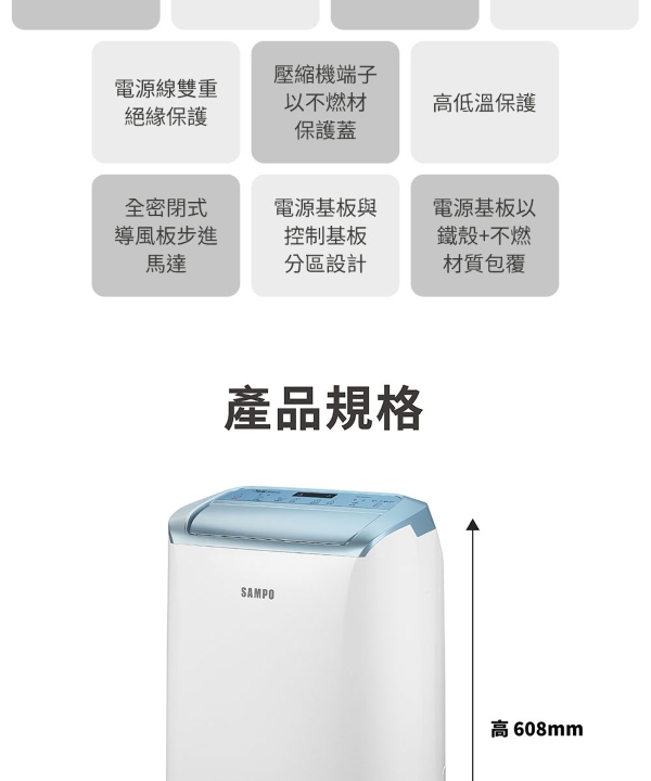 SAMPO 聲寶 10.5L 智慧全能微電腦除濕機 AD-W520T