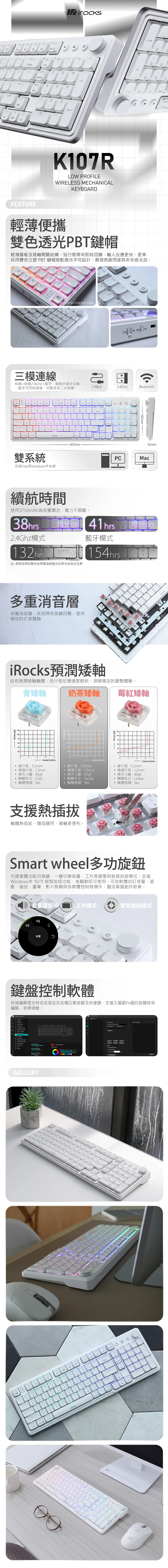 irocks K107R RGB 熱插拔三模矮軸無線機械鍵盤 白色