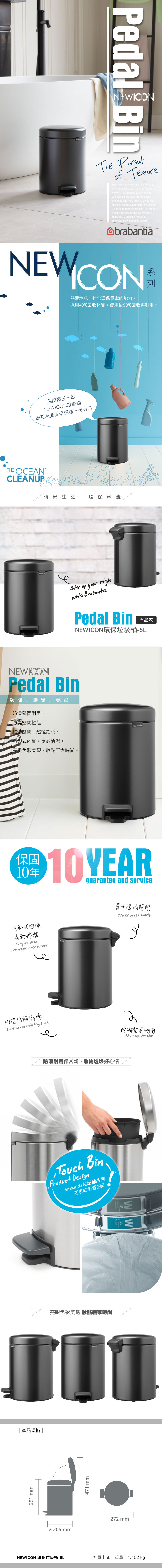 Brabantia NEWICON環保垃圾桶-石墨灰5L