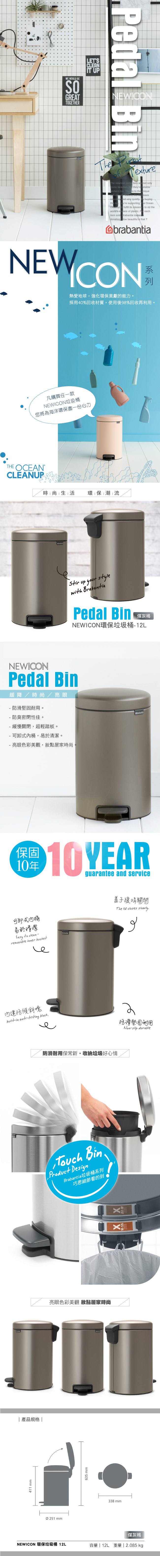 Brabantia NEWICON環保垃圾桶 煤灰褐-12L