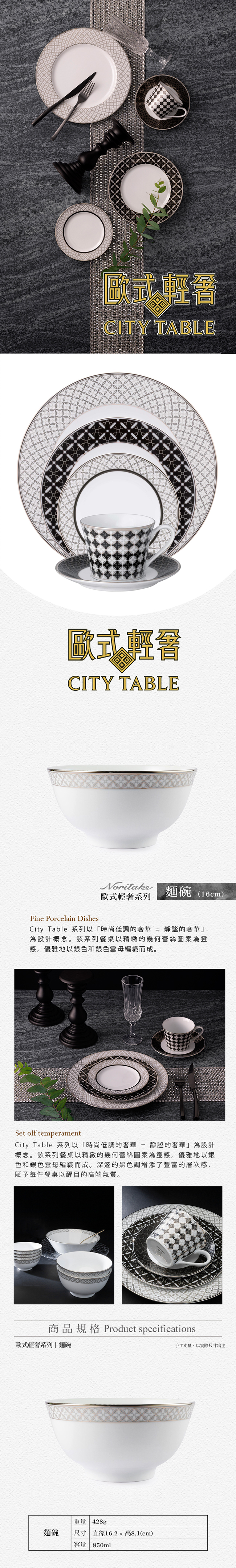 Noritake 歐式輕奢銀邊-麵碗16CM