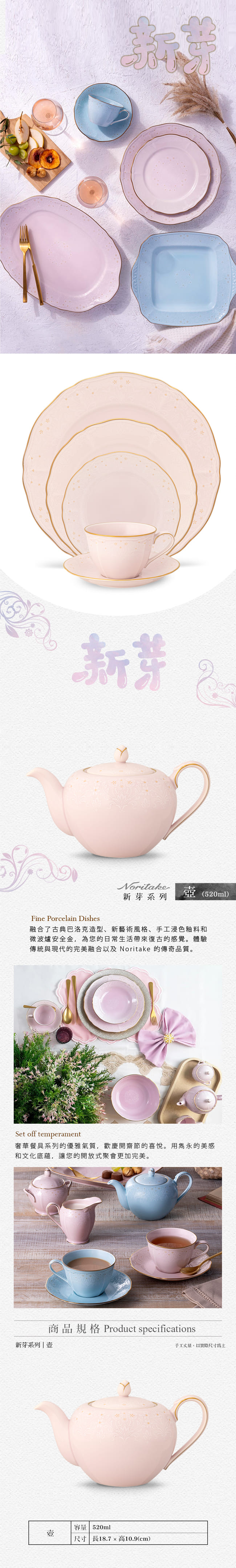 新芽-下午茶杯碟5件組_粉茶壺+粉咖啡對杯(禮盒組)(可微波)