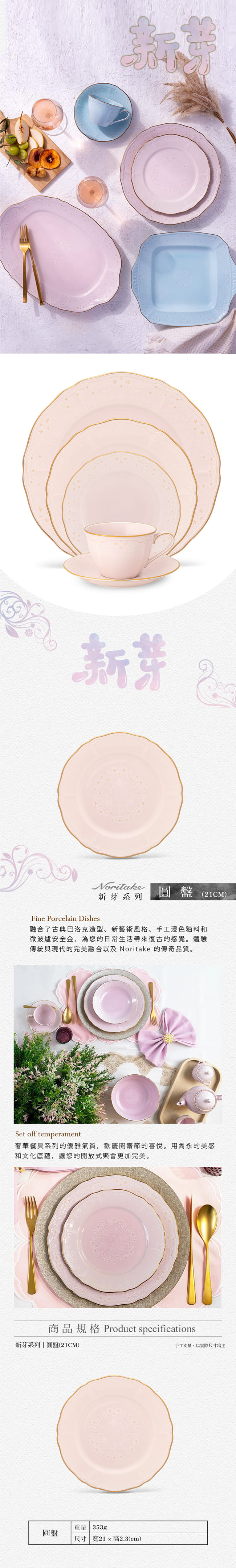 新芽-雙盤組21CM_玫瑰粉(可微波)(禮盒)