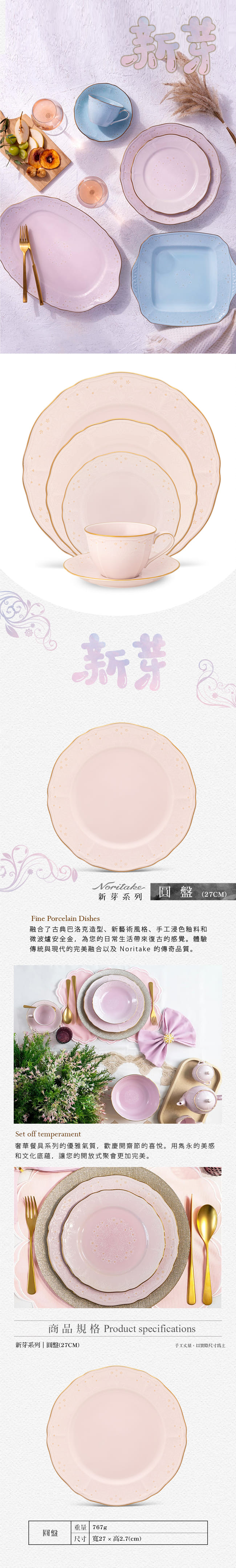 新芽-雙盤組27CM_玫瑰粉(可微波)(禮盒)