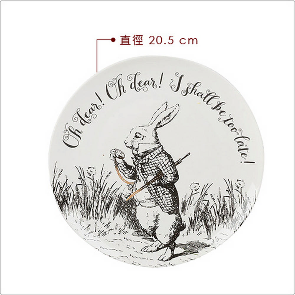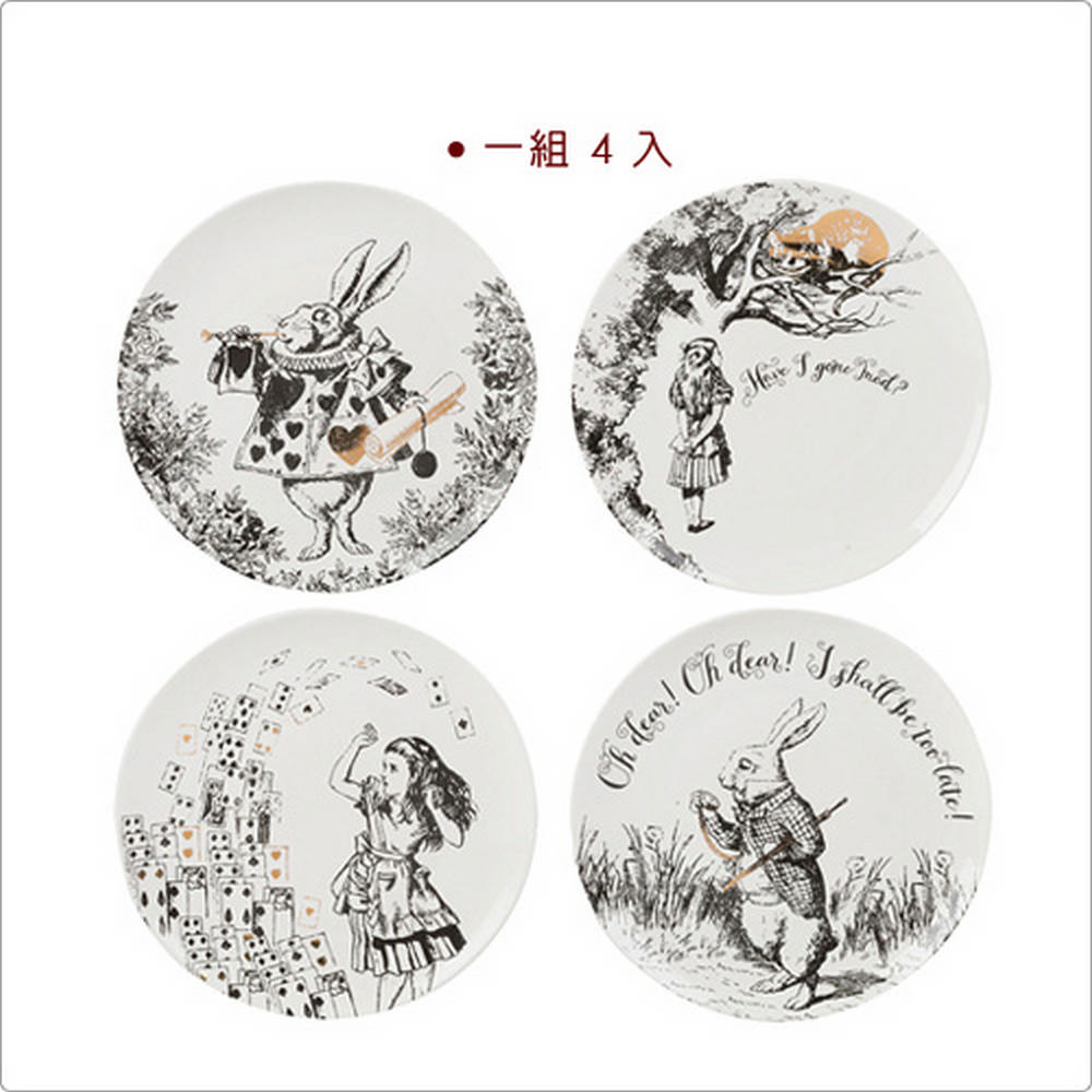 V&A 系列花色取材自英國倫敦維多利亞和愛伯特博物館 (Victoria and Albert Museum) 館藏品,讓居家品重現其蘊含的美感與精神,使生活與藝術巧妙融合。不論是清爽的餐前沙拉或是飽餐一頓後的美味甜點,皆需要大小適宜的器皿來盛放,推薦您此組淺餐盤;圖案取自 John Tenniel 為愛麗絲夢遊仙境畫的插畫;描繪愛麗絲踏進夢裡,準備與白兔子、妙妙貓和瘋帽子一起對抗紅心皇后的奇幻故事。適合盛放菜餚、義大利麵、麵包輕食或是點心水果,亦可作奶油盤、乳酪盤使用。