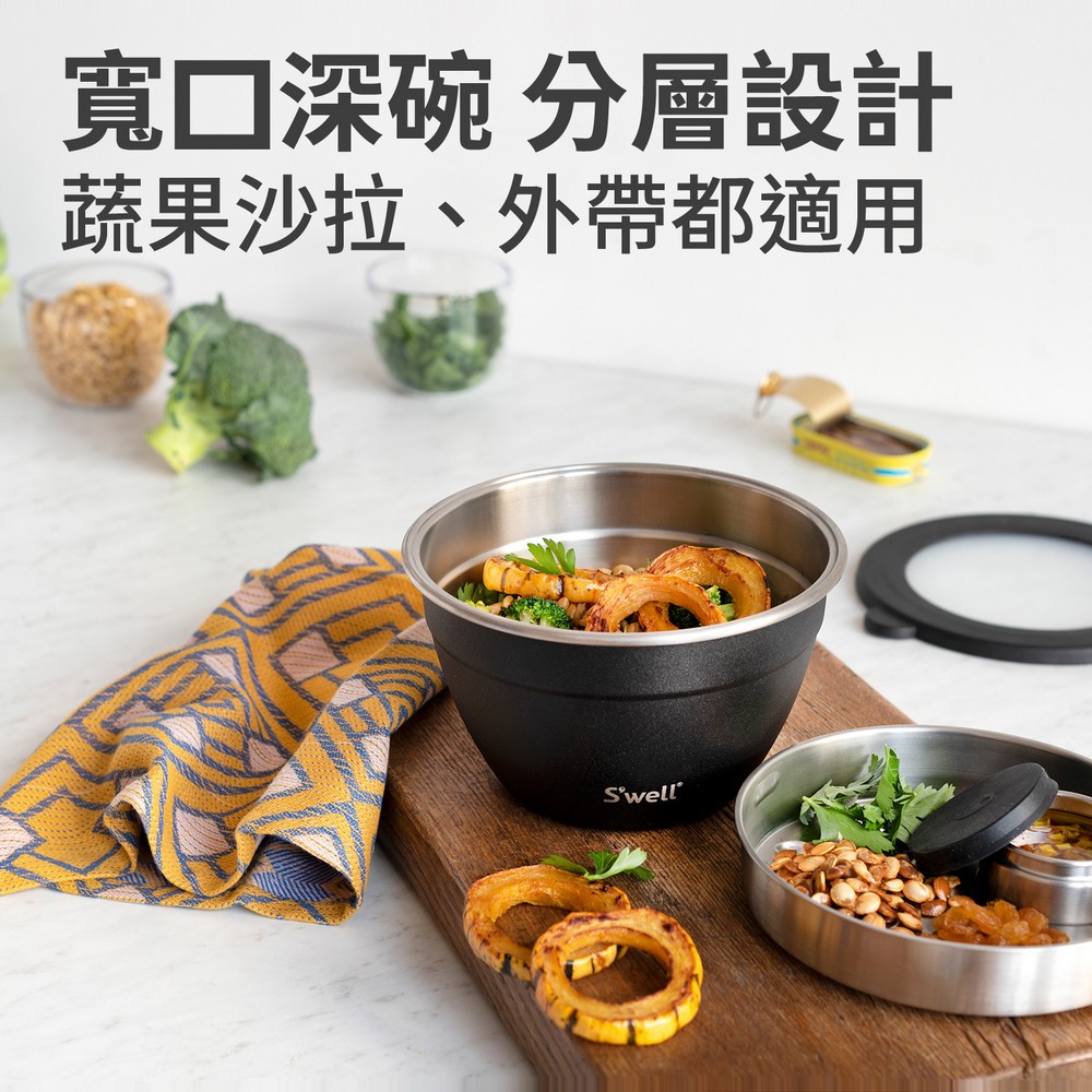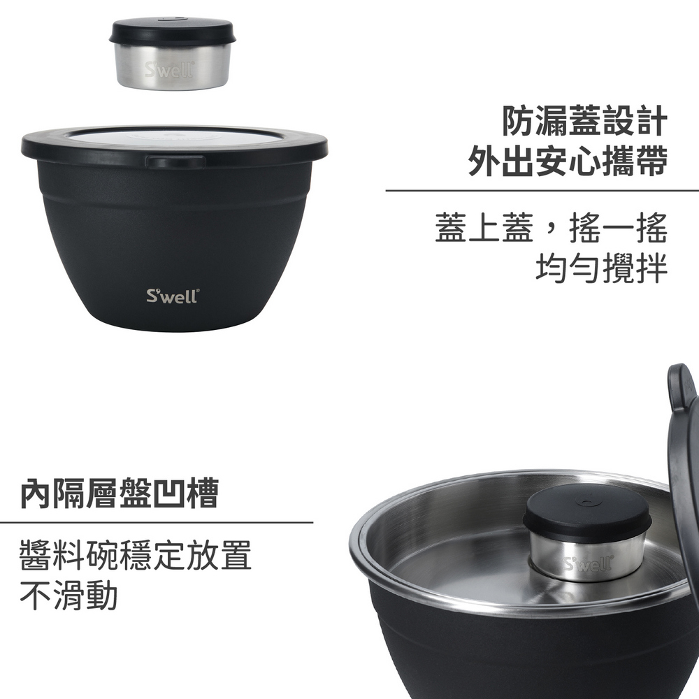 尺寸:碗含蓋長 21 x 寬 19.5 x 高 11.5 cm、內隔層直徑 17.7 x 高 3.6 cm;醬料罐含蓋直徑 6.4 x 高 3.3 cm