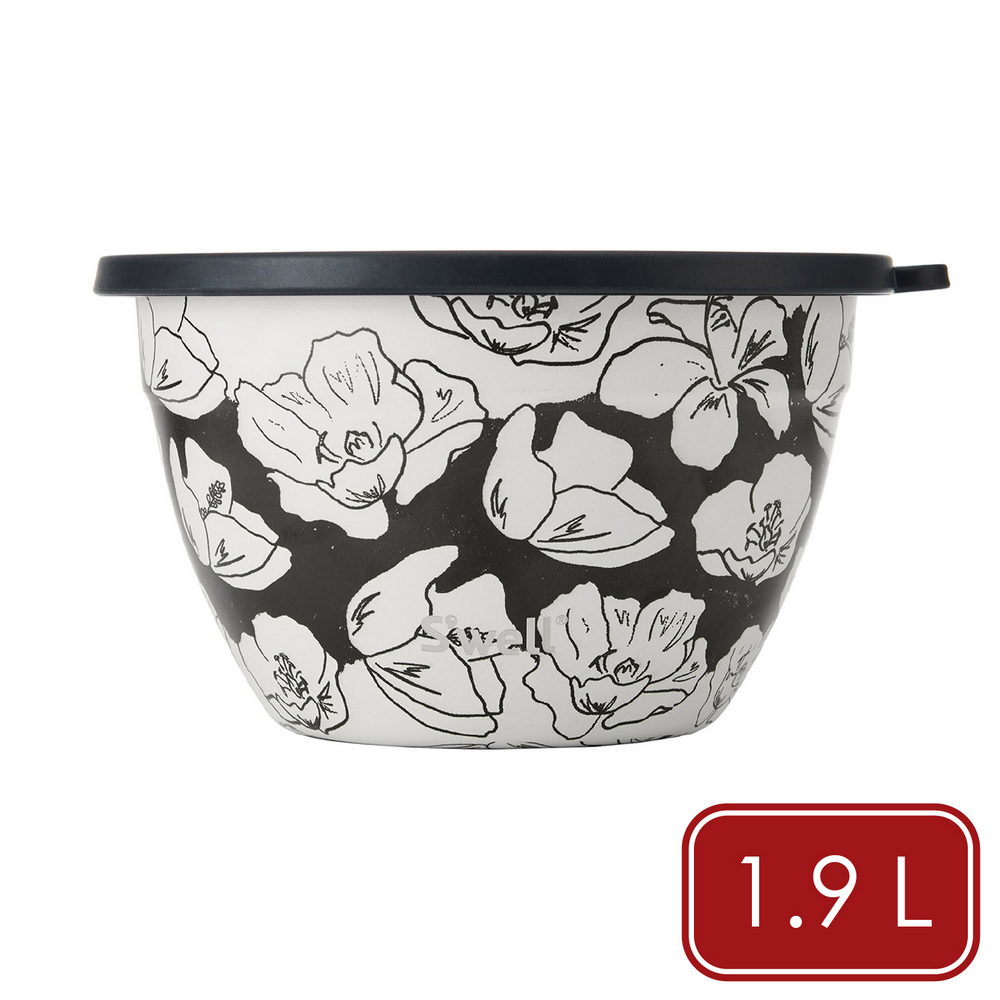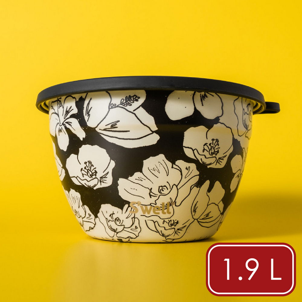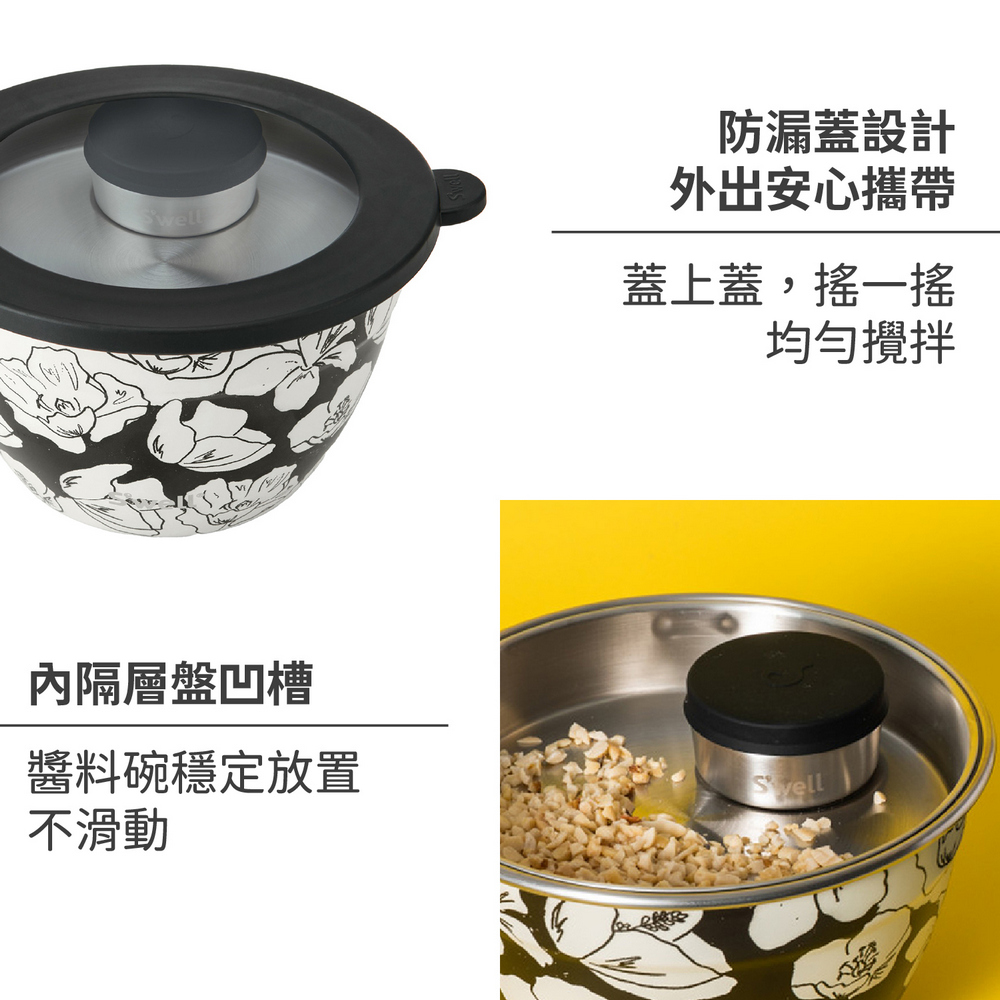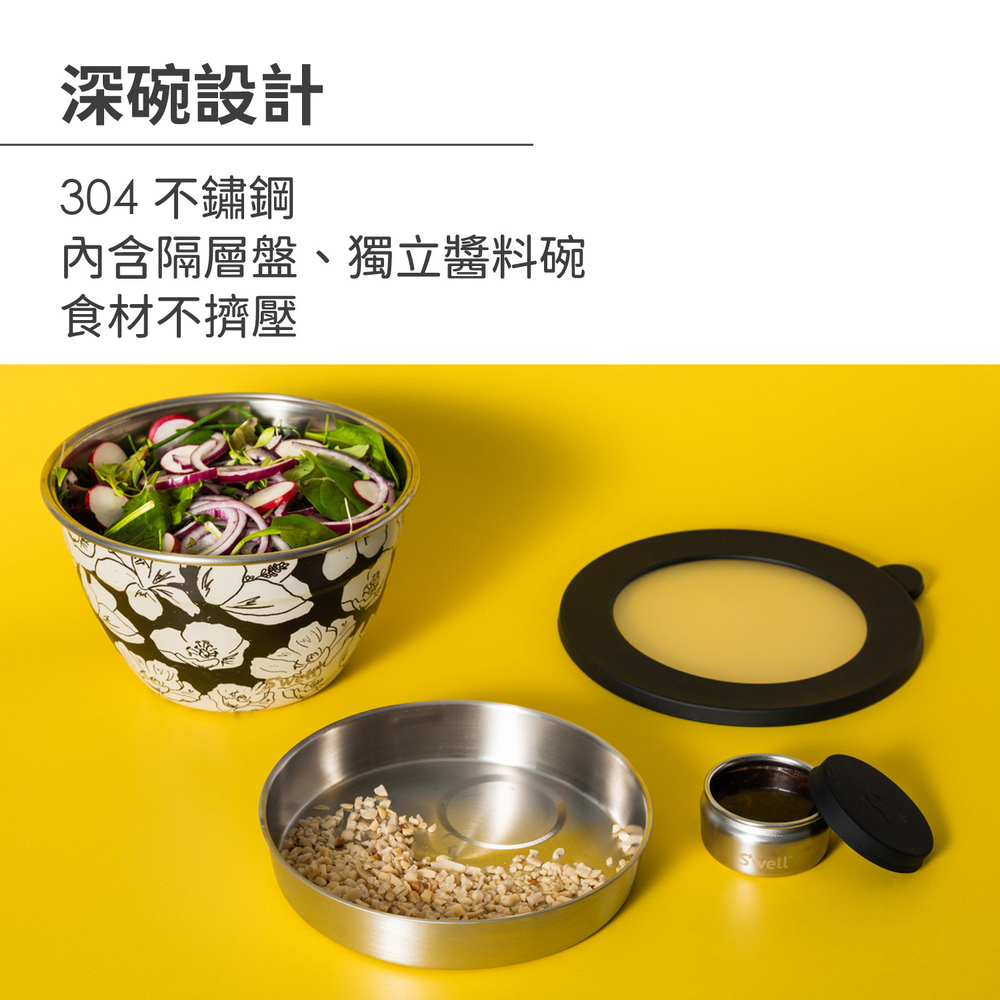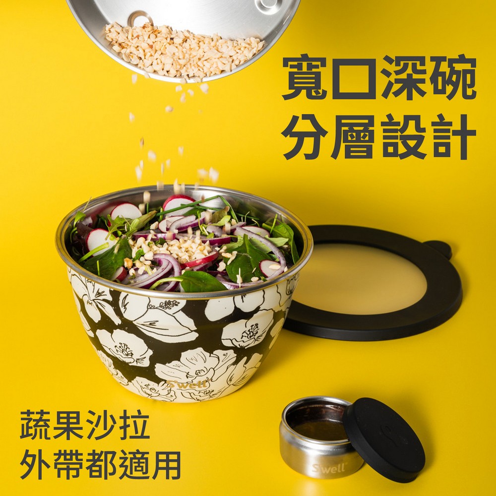 美國 S'well - Kit醬料罐+防漏不鏽鋼沙拉碗(墨韻花影1.9L) / swell 餐碗 沙拉盆 不鏽鋼湯碗 便當盒
