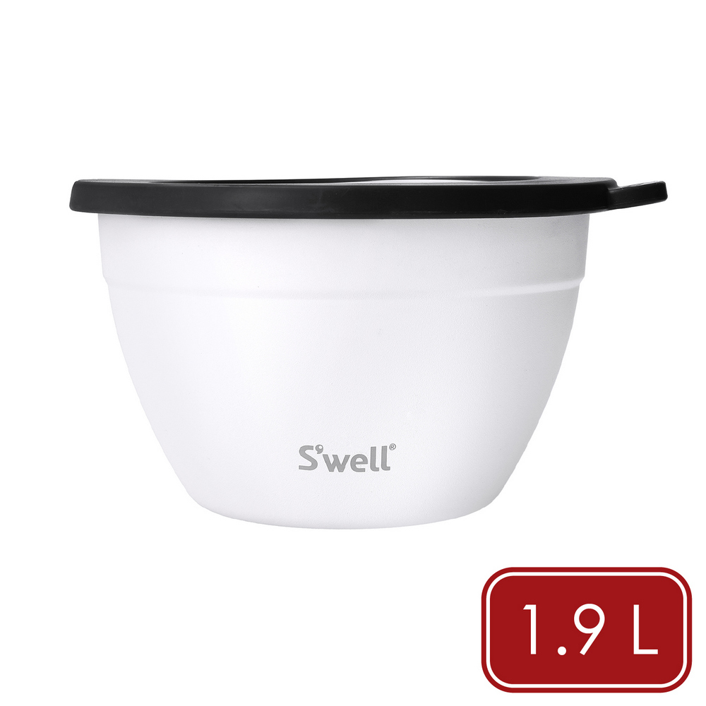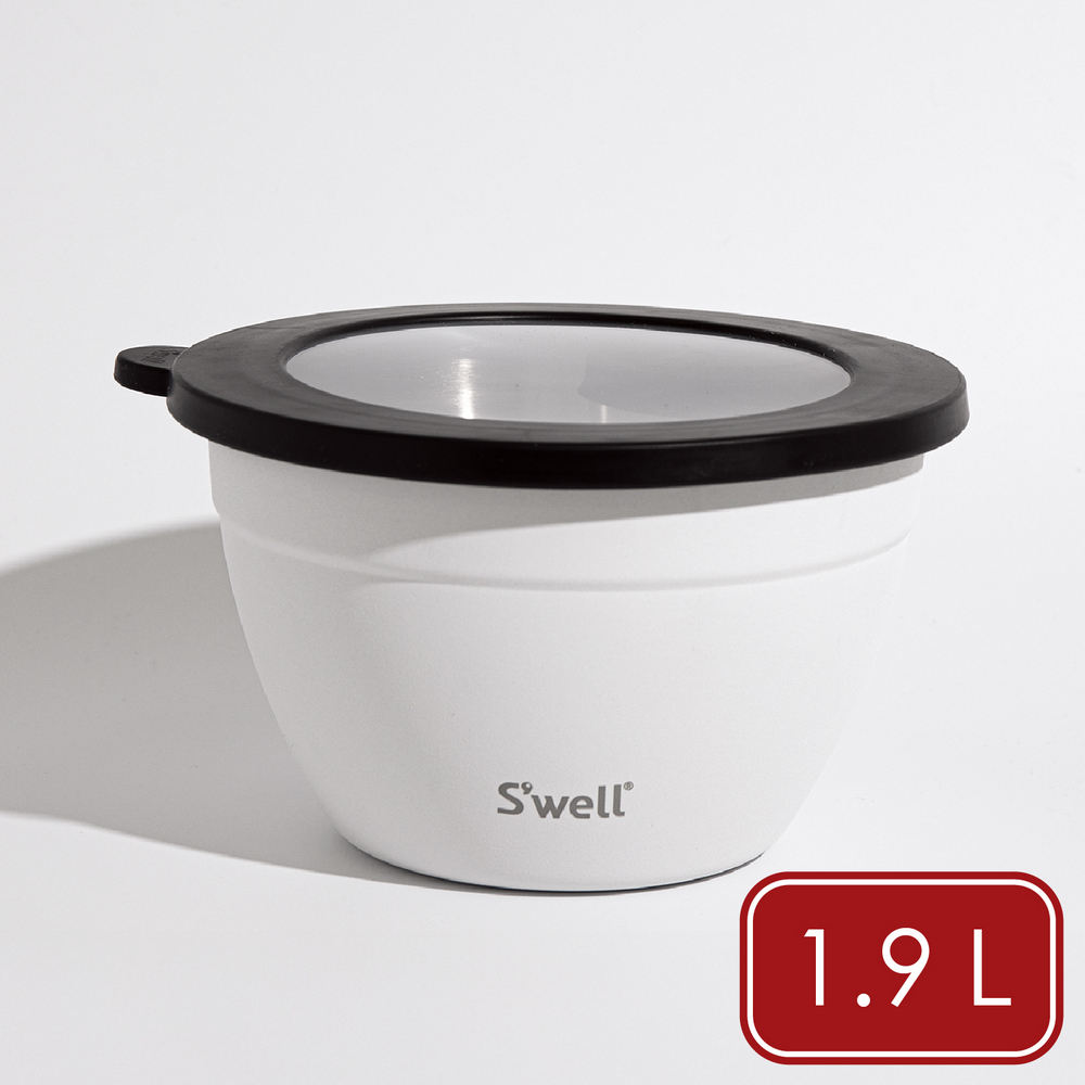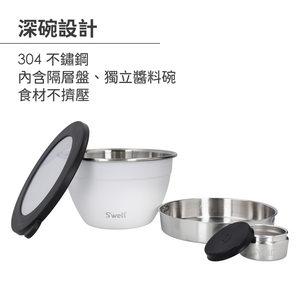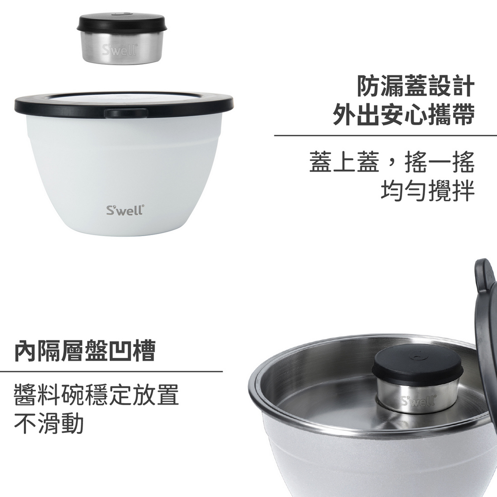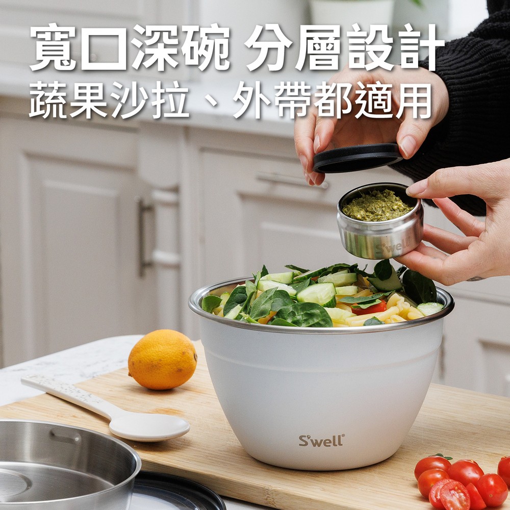 美國 S'well - Kit醬料罐+防漏不鏽鋼沙拉碗(雲朵白1.9L) / swell 餐碗 沙拉盆 不鏽鋼湯碗 便當盒