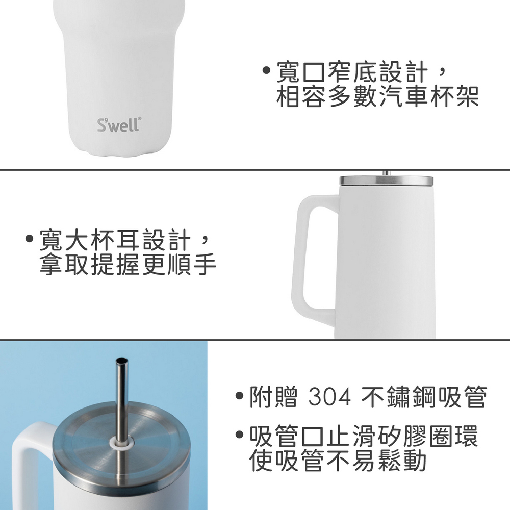 美國 S'well - Tumbler不鏽鋼吸管保溫隨行杯(雲朵白1180ml) / swell 冰壩杯 冰霸杯 吸管隨手杯 保冷保冰杯 環保杯 車載杯