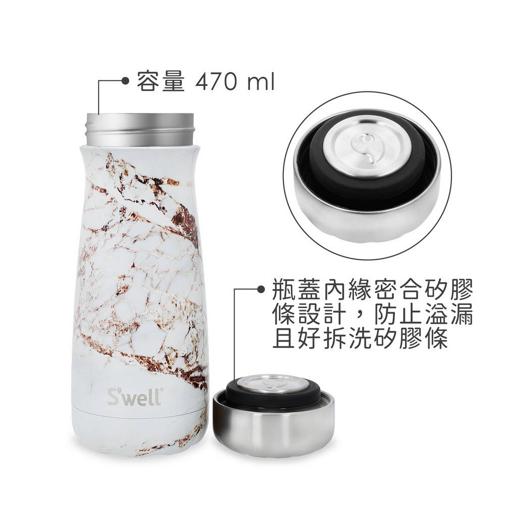 美國 S'well - Traveler不鏽鋼保溫瓶(鎏金石紋470ml) / 保溫杯 保冷保冰杯 環保杯 咖啡杯 隨行杯