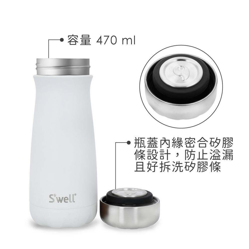 美國 S'well - Traveler不鏽鋼保溫瓶(雲朵白470ml) / 保溫杯 保冷保冰杯 環保杯 咖啡杯 隨行杯
