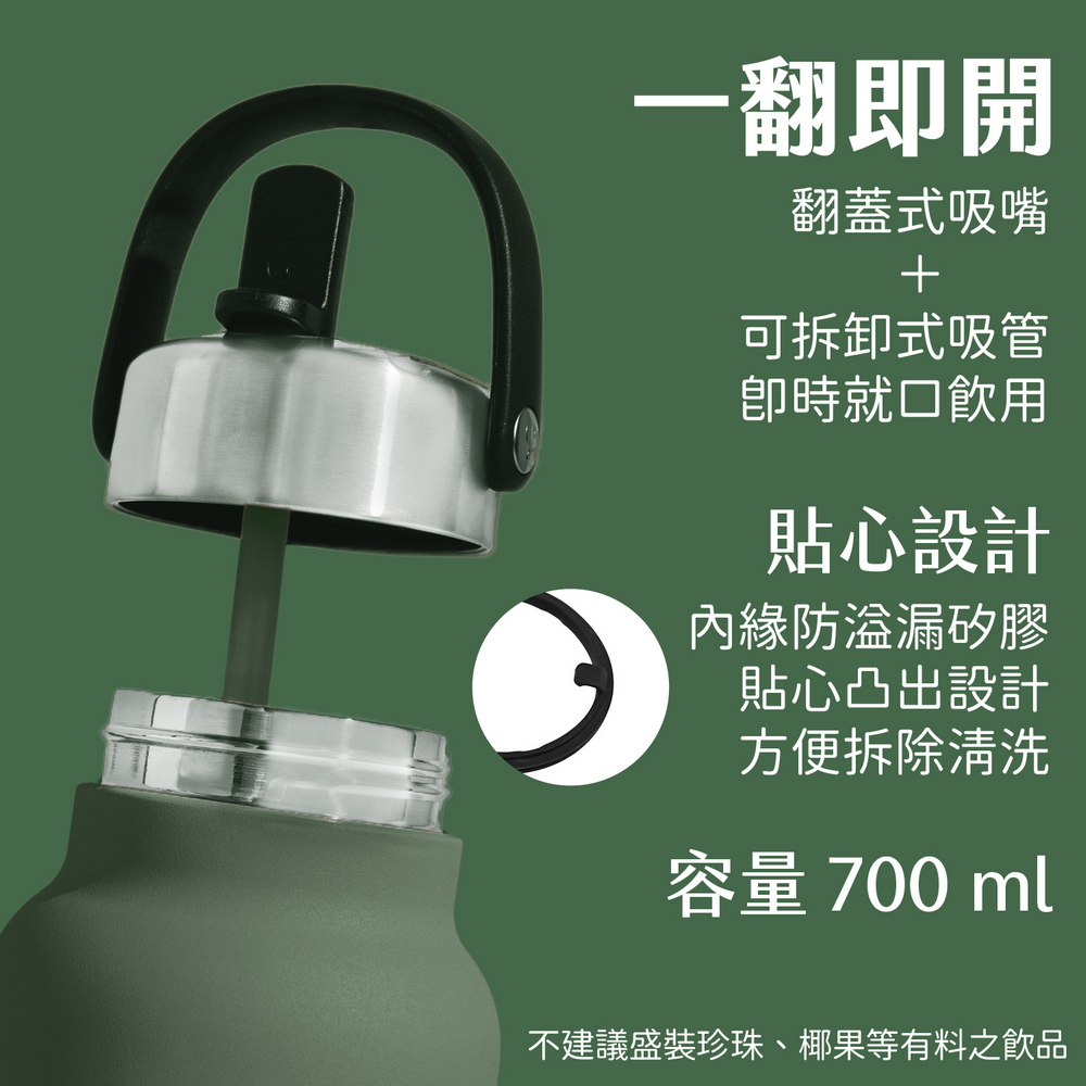 美國 S'well - Explorer不鏽鋼吸管保溫瓶(軍綠700ml) / 保溫杯 保冷保冰杯 運動水壺 環保杯 隨行杯