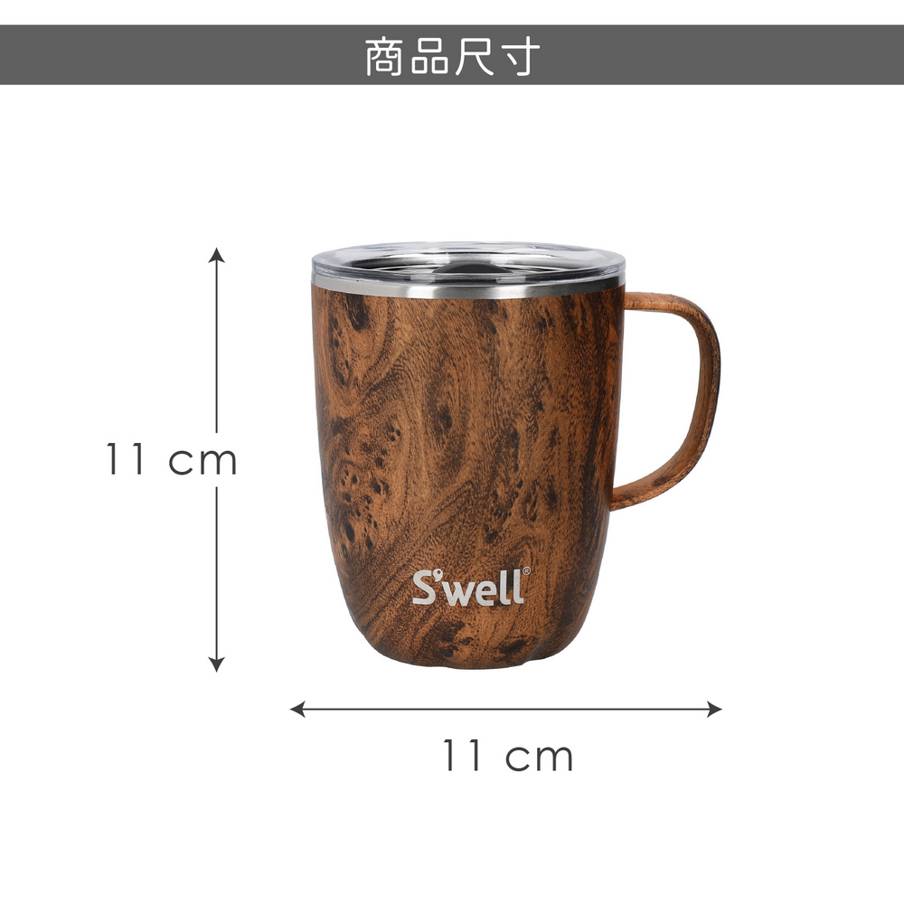 美國 S'well - Mug不鏽鋼滑蓋保溫馬克杯(金柚木紋350ml) / 保溫杯 保冷保冰杯 推蓋直飲杯 環保杯 隨行杯