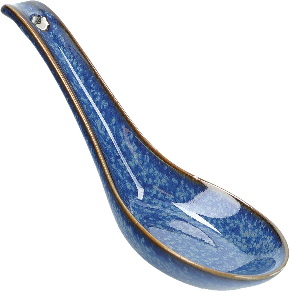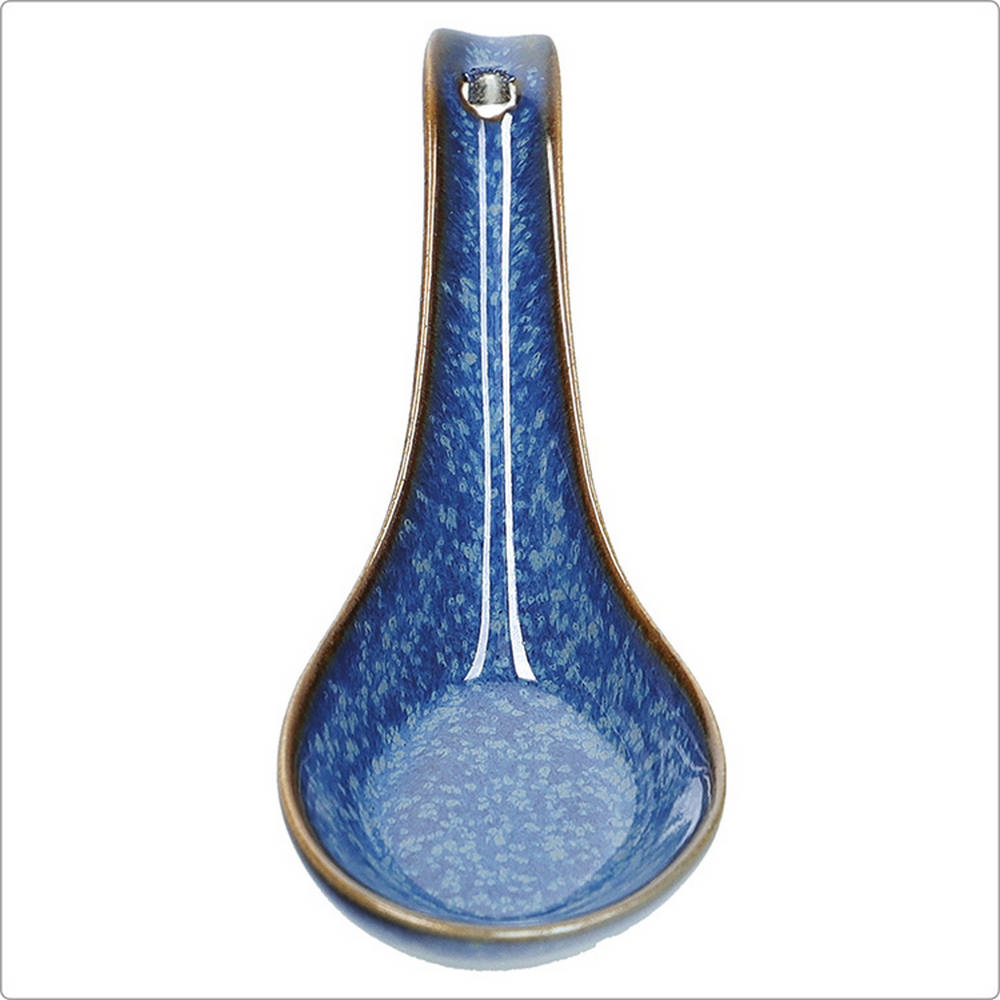舀取紫米紅豆湯、芋頭西米露等甜湯或冰品等,推薦您此款餐匙。以陶瓷製成,不沾味的特性也非常適合品茶時盛起茶水試味;藍色作底色搭配海浪泡沫般的釉彩,呈現典雅質樸意象,邊緣搭配金邊線條設計,予人和風感受,為生活帶來東方美學質感氛圍。